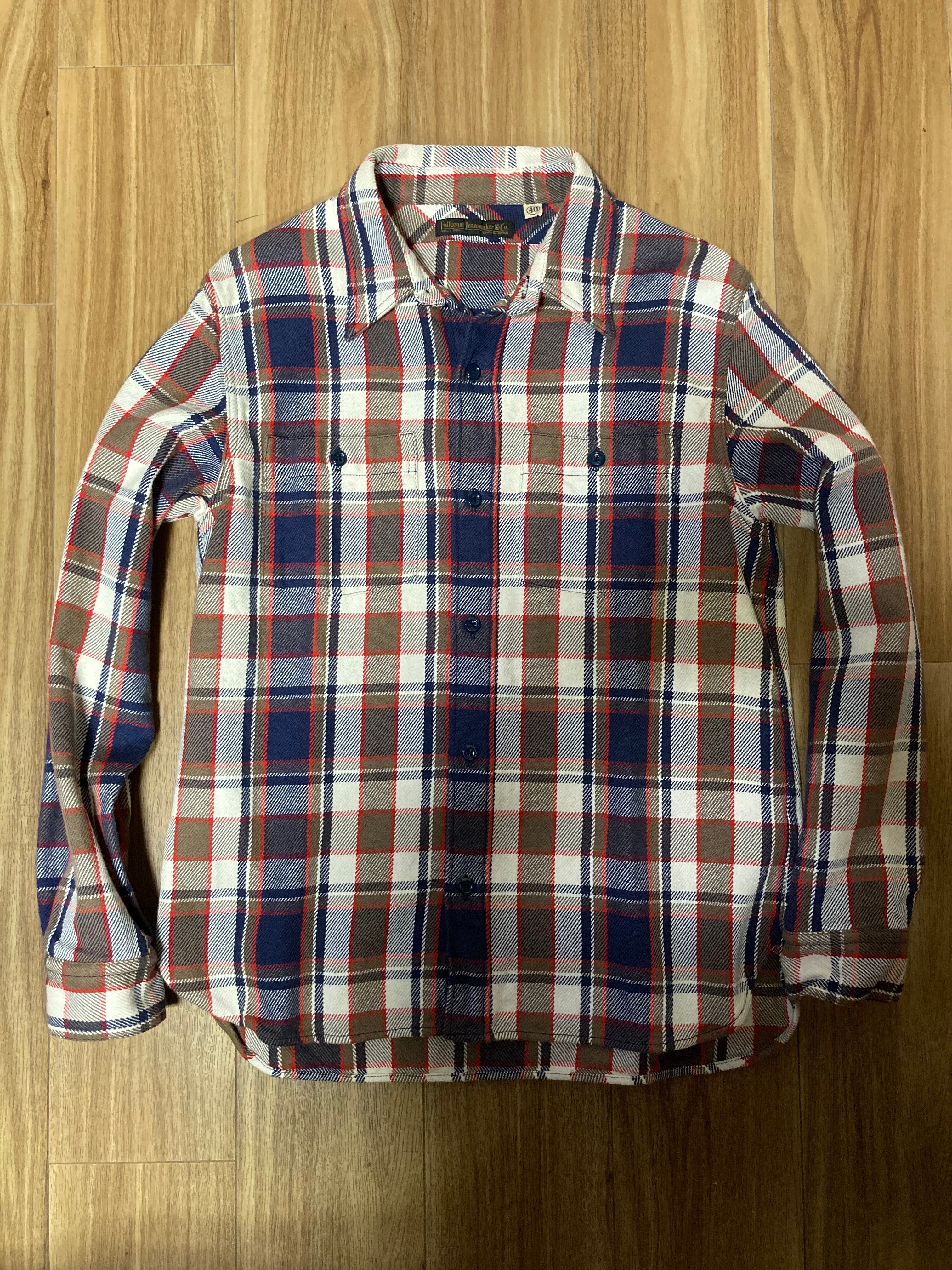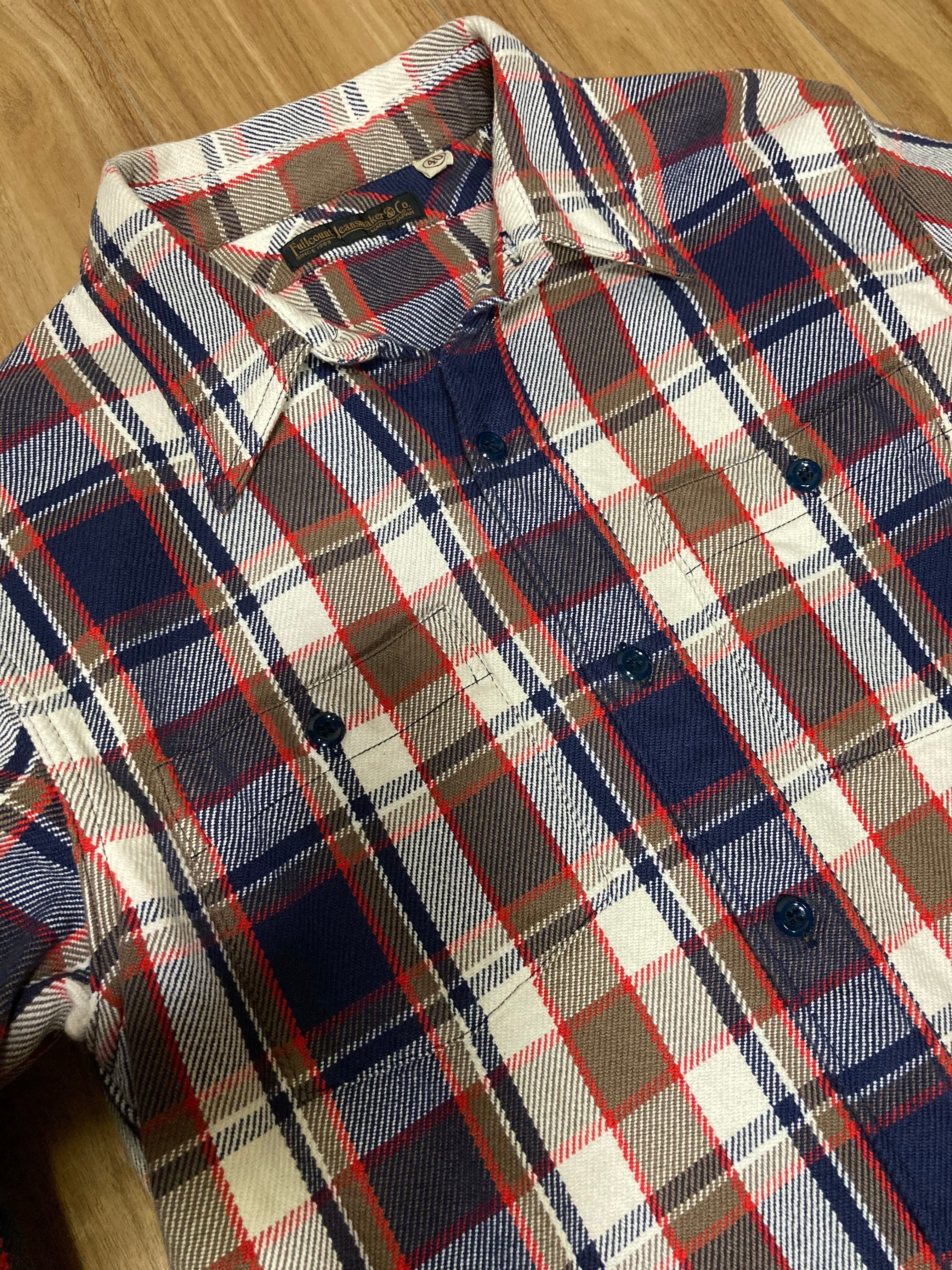 ORIGINALLY CHECK NEL SHIRTS”SKUNK”のご紹介となります。タテヨコ#10/2で打ち込んだヘビーウェイトねる。ベージュXレッドXなす紺の4色チェックは大人ぽく上品でなおかつクラッシックな柄となっています。フロントポケットはパーフェクトな柄合わせでポケット口にボタンが付きます。