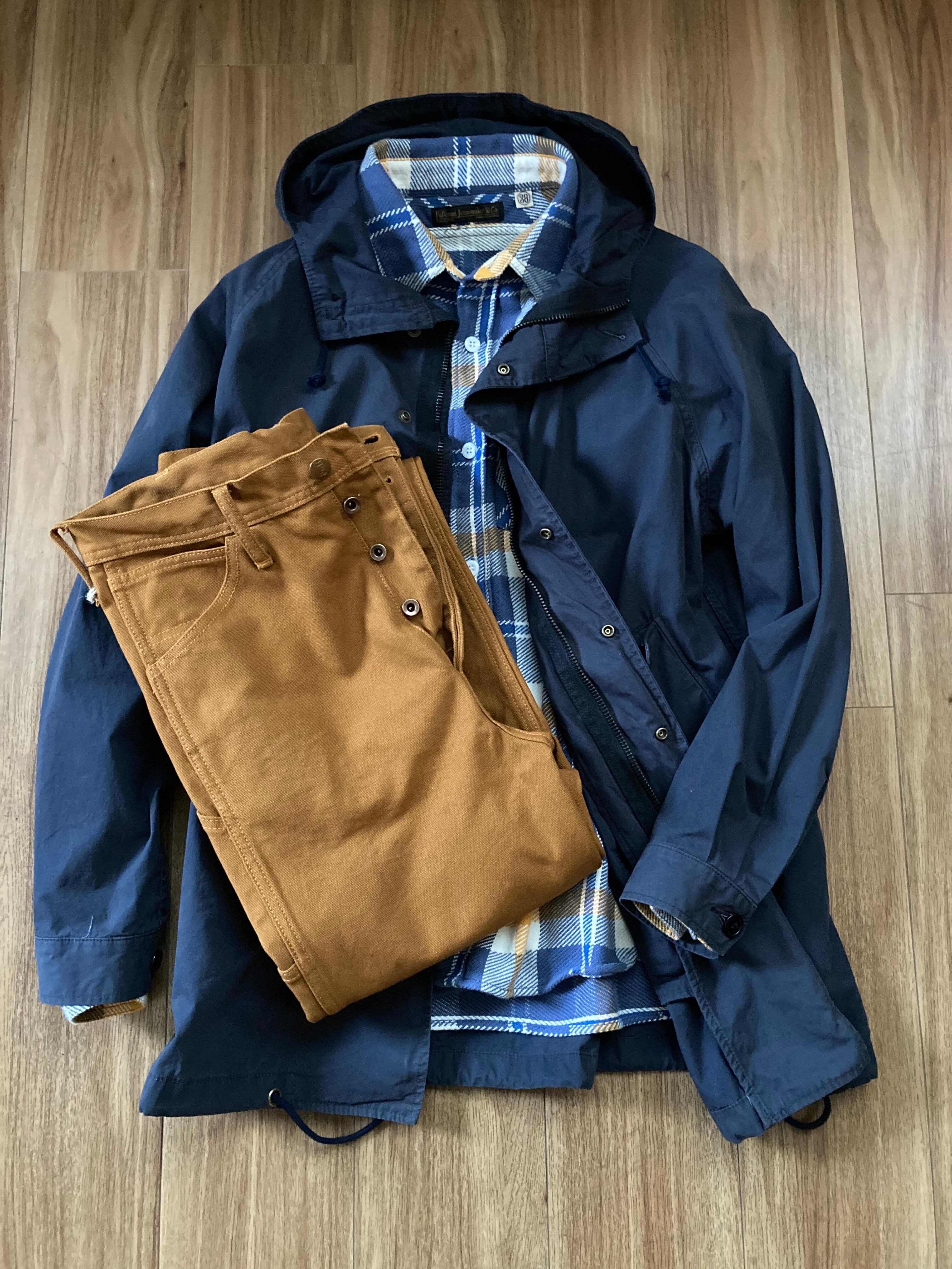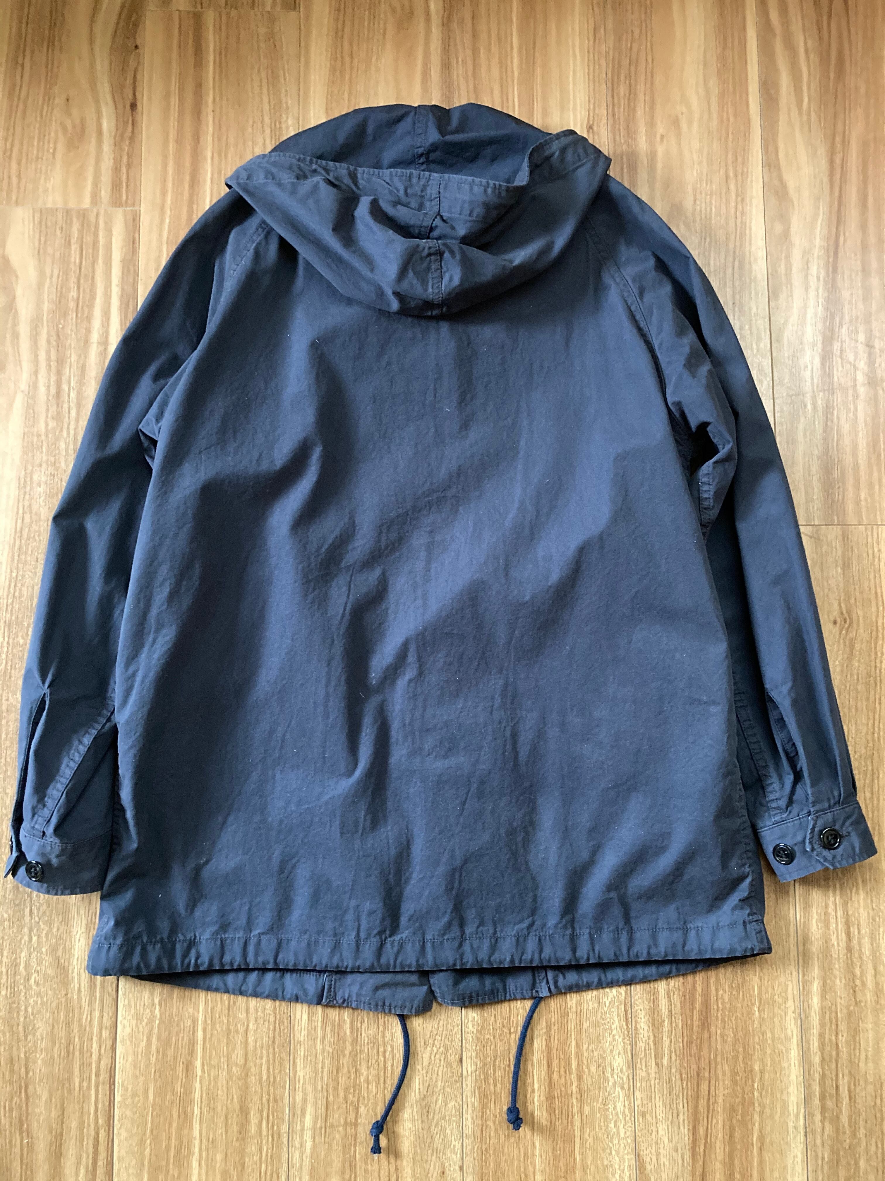 起毛、樹脂加工を施した高密度ウェーザー素材を使用したスタンド フード ショートモッコートになります。生地の風合いがオゾン加工によって、醸し出されるこなれた表情と抜け感が特徴です。ルーズなシルエットで、フラップつきの大きなハンドポケット、フード口と裾にドローコードが付いております。