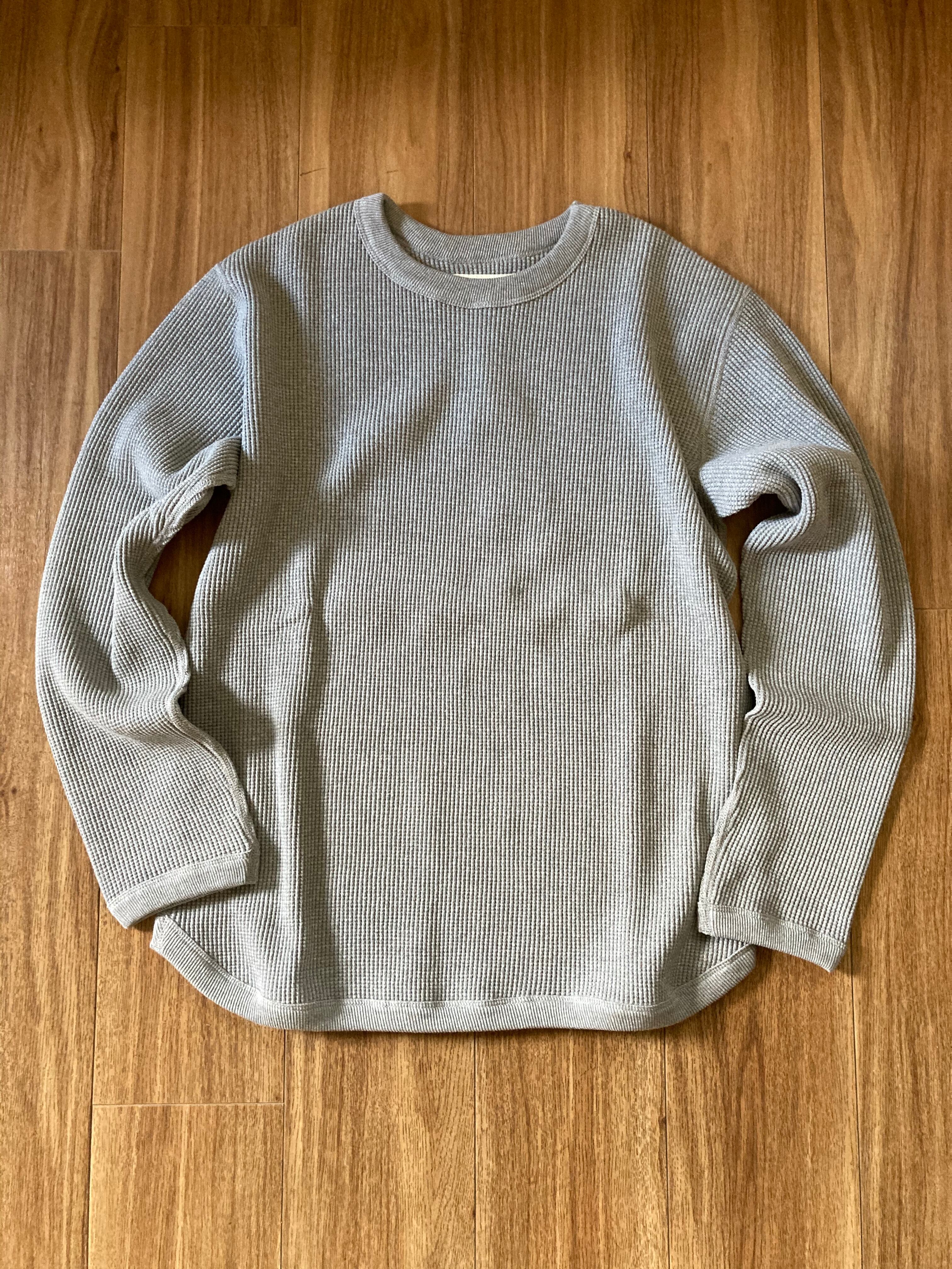 HEAVY WEIGHT WAFFLE LONG SLEEVE TEE のご案内です。毎秋冬シーズンにご好評いただいておりますこちらのワッフルTEEですが、今年もこの秋冬にも登場致します。20//の糸を使用した度詰ワッフルサーマルTシャツ。引き備えの糸を使用したオリジナルのワッフルは糸が生きており、斜行を抑える動きがあります。#5222型縫製はフラットシーマを採用しております。着心地はもちろん保温性も抜群。