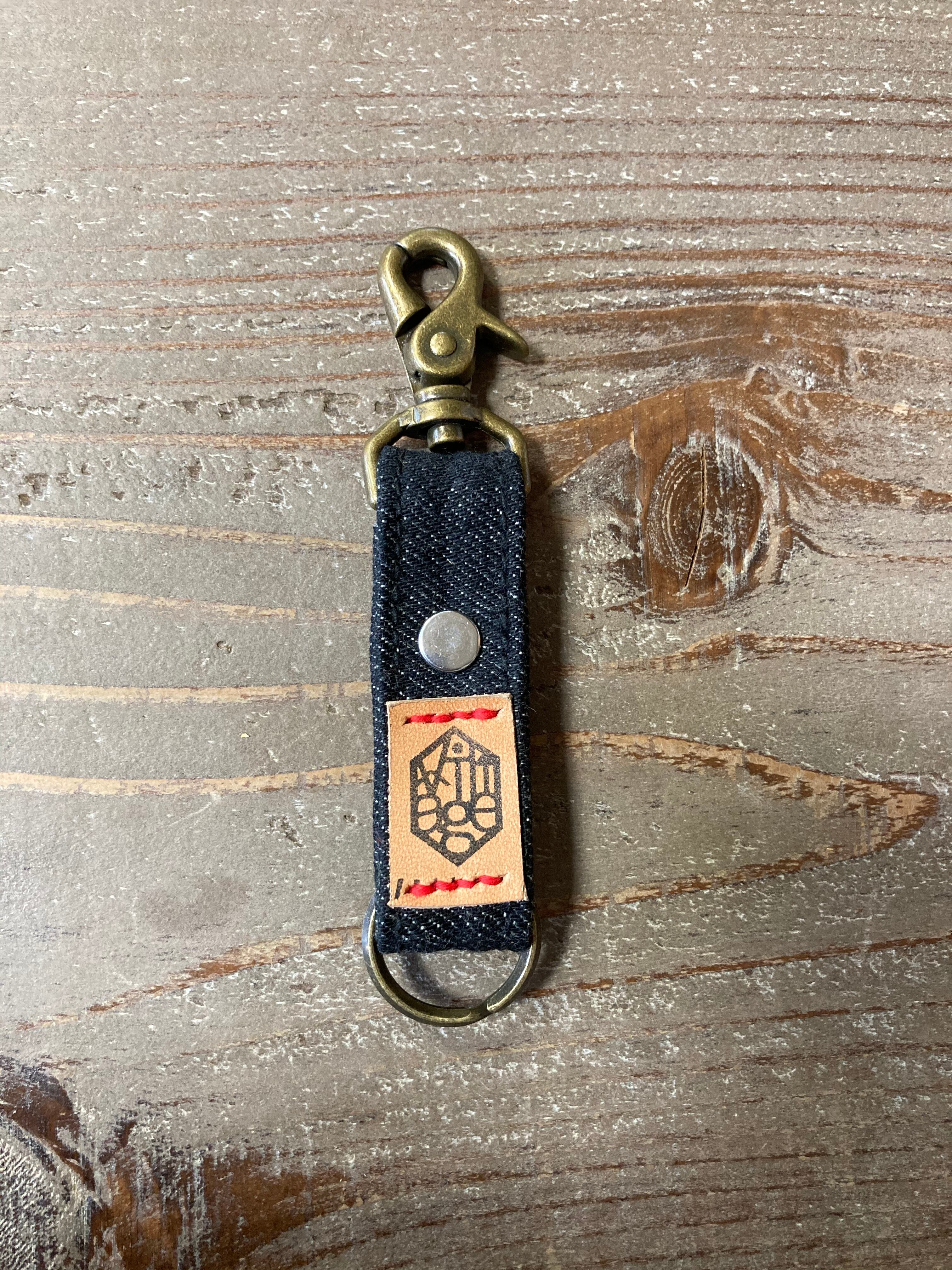 ハンドメイド、ブラックデニムキーホルダーです。今回はブラックデニムで作ってみました。
