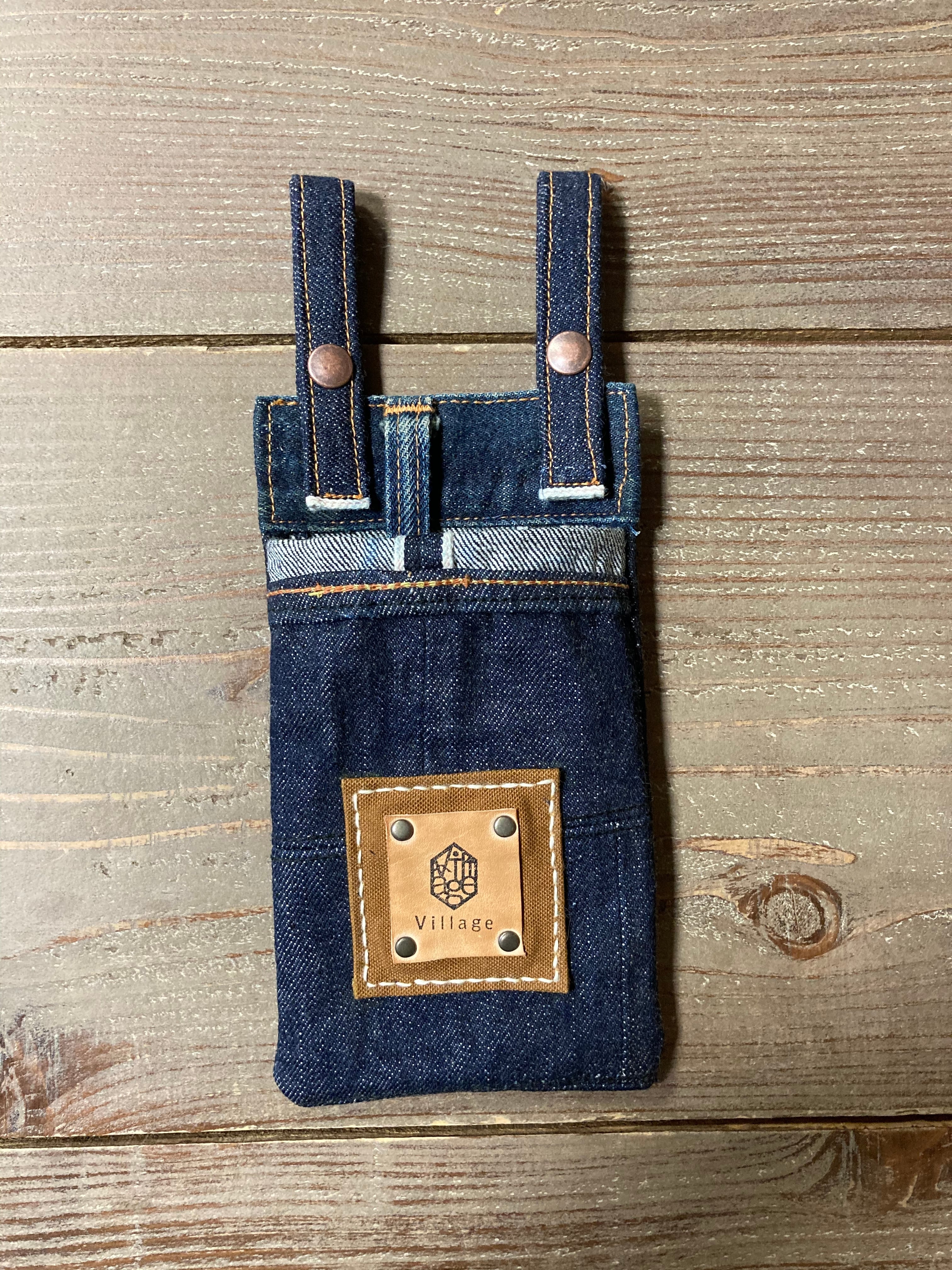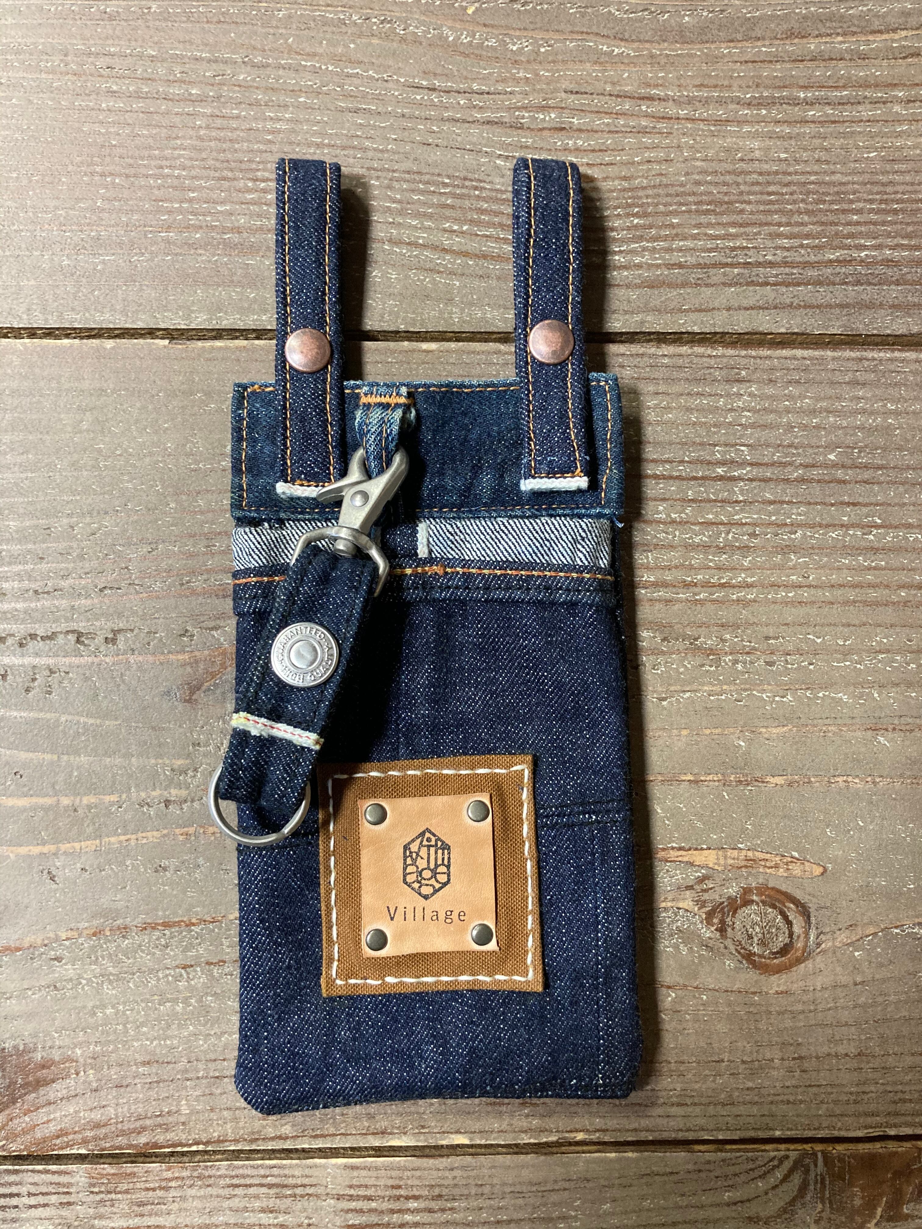 ジーンズの裾とベルトループを利用した、ハンドメイドのスマホケースです。使うほどにアジが出てくる、経年変化が楽しみ。