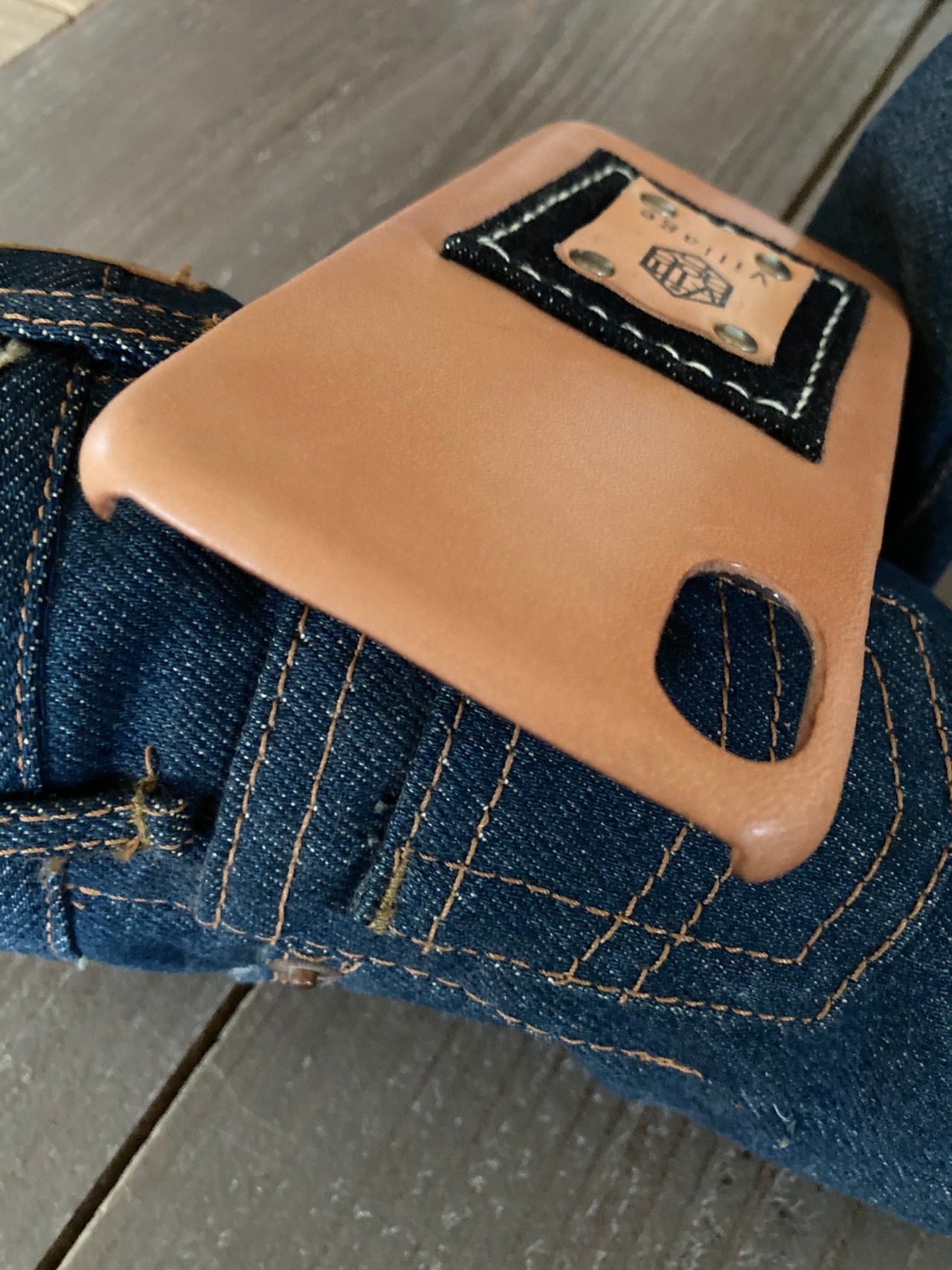 レザーとデニムで作ってみました。
