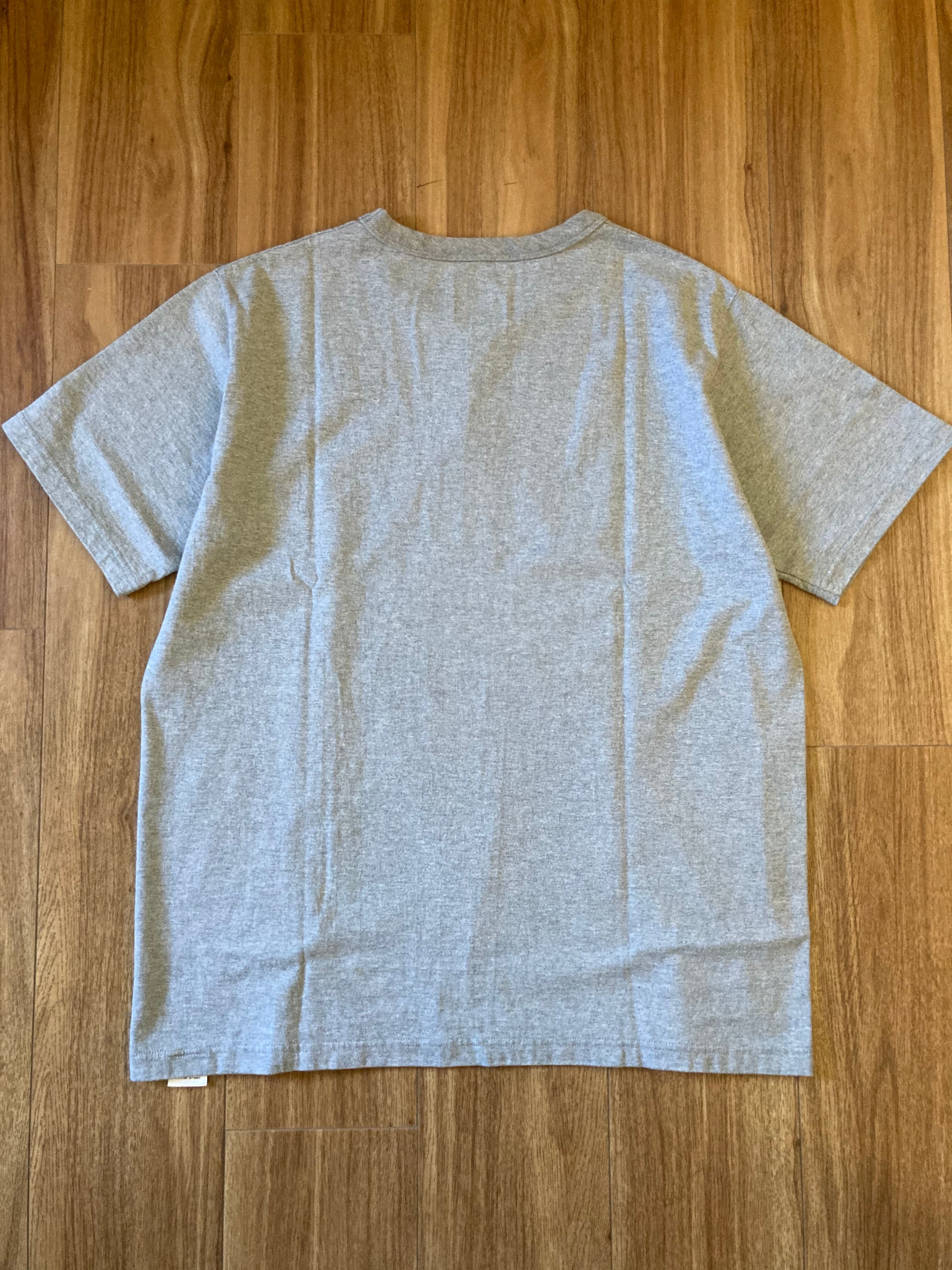 人気の定番Teeにプリントの紹介となります。創業当時より定番として作り続けている生地を採用した、こだわり抜いた丸胴仕上げとなります。首元のみバインダー仕上げ。